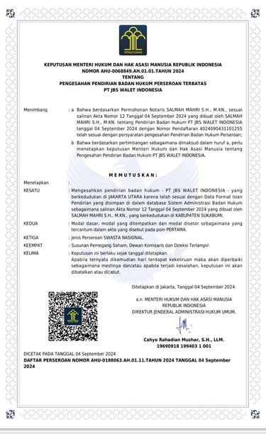 Kami beroperasi di bawah payung hukum PT JBs Walet Indonesia, dengan pendiri Kang Ahmad BW beserta tim yang telah berpengalaman lebih dari 10 tahun dalam industri perwaletan — khususnya dalam bidang perdagangan sarang burung walet.